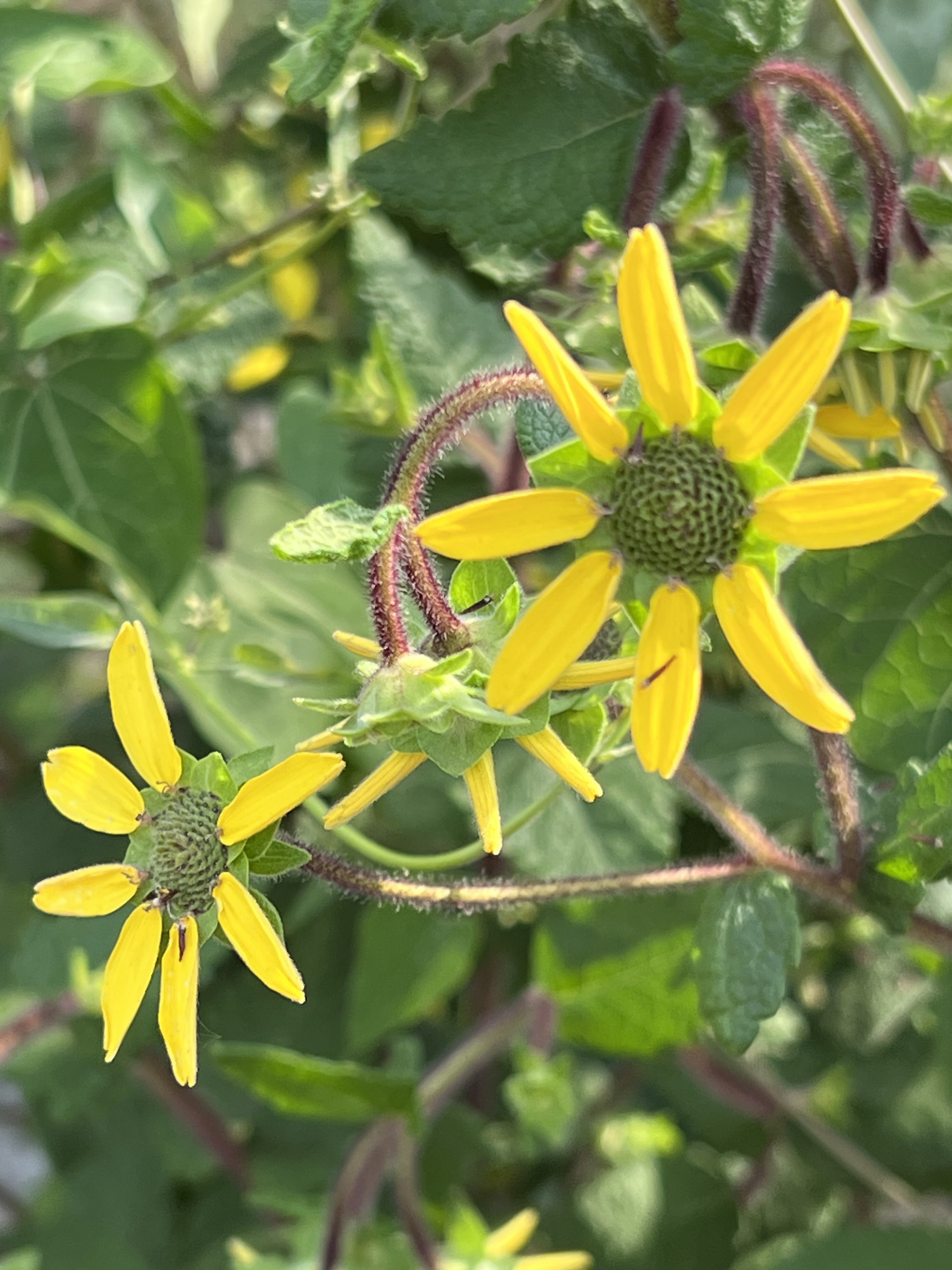 Garden #3 - (4 large crepe myrtles bushes were removed in 2023 with saplings still coming up. Will have soil referbished in 2024 and replanted with likely hostas) Autumn joy sedums with native honeyvine milkweed volunteers throughout garden, added zinnias for color.