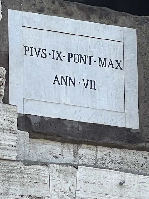 Walking all around the beautifully landscaped grounds was peaceful and informative without being overbuilt and busy. We walked after the tour towards the location of a part of the Appian Way. It was a lovely walk and we were not sure when we were actually on the Appian Way as we kept looking for ancient stone pavers on the pathway. It certainly looked like a well-maintained old road! We walk and walked and got tired so we turned around after a short rest stop by this stone sign that said Via Appia Antica. Found out later we were on the Appian Way after all! It is 360 miles built in 312 BC. Found out later that there's only 10 miles that have been preserved with those old pavers as a park. Along the Appian Way are the ancient aqueduct ruins and many other catacomb sites. Crucifixions and burials for the poor were common along this road that was built with a military purpose originally. It was a lovely walk with a shrine here and there on the portion we enjoyed.